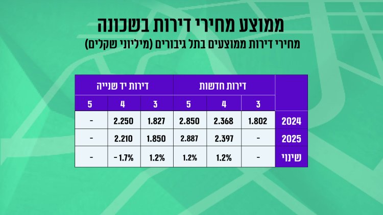 שינוי מחירים (חציון ראשון 2024 לעומת חציון ראשון 2025): עליה של כ-0.5% במחיר דירה. ירידה של כ-27% בכמות העסקאות בין התקופות.