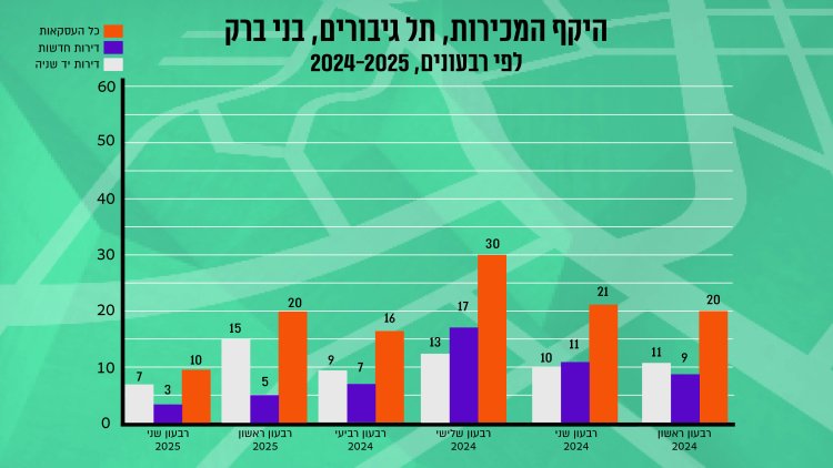 כמות עסקאות לרכישת דירה: חציון ראשון 2024 - 911 עסקאות, חציון ראשון 2025 - 592 עסקאות