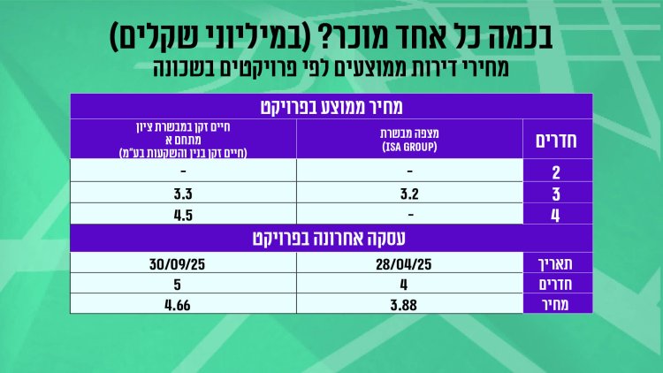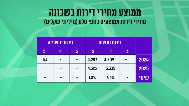שינוי מחירים (חציון ראשון 2024 לעומת חציון ראשון 2025): עליה של כ-3% במחיר דירה. ירידה של כ-51% בכמות העסקאות בין התקופות.